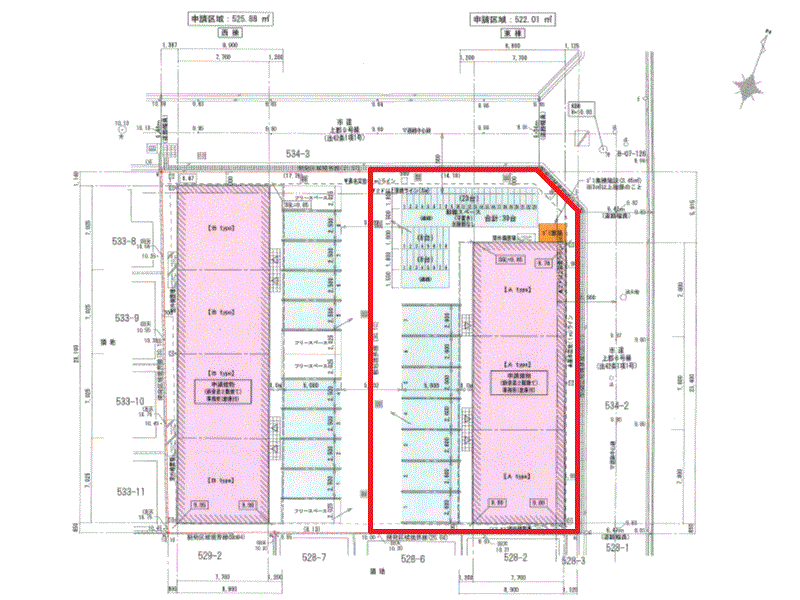 | 道路幅員 | 角地 北東 6.4m 北 6.3m | 駐車場 | 有 駐車可能台数:3台 |