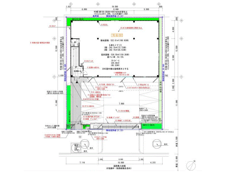 | 建物間口・奥行き | 間口:19.5m 奥行き:12.5m |