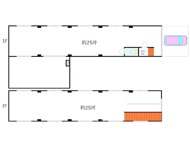 奥行きある広い2階建て倉庫。高天井で作業場利用にも最適。入口から搬入しやすく、在庫保管や軽作業の拠点に便利な使い勝手の良い物件です。 |