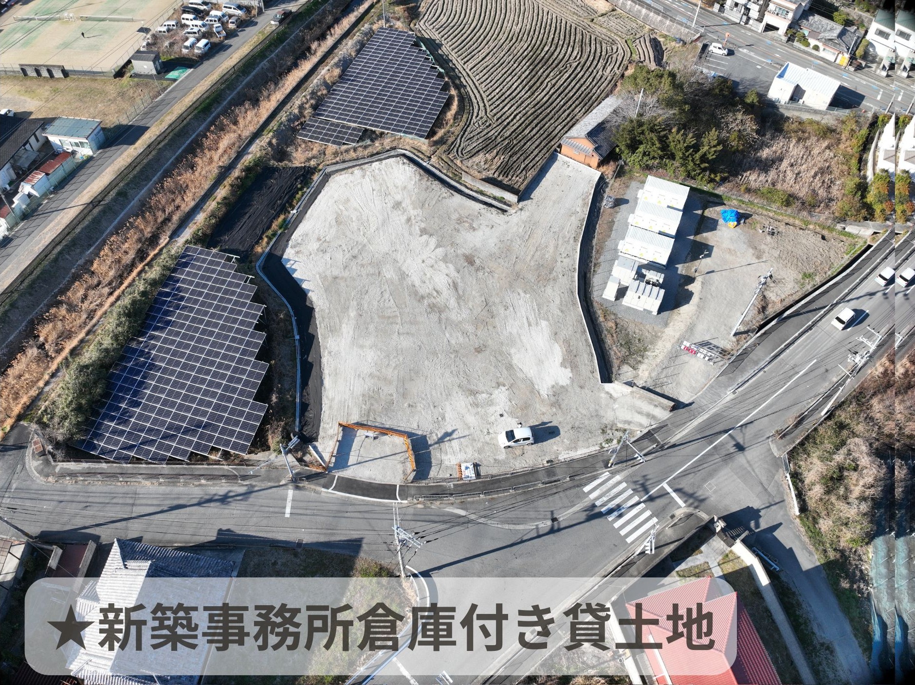 *造成埋め立て砕石敷き *保証会社加入要(アクセス保証 初回100% 更新年10%) *売買相談可。(価格3,800万円) *事業用定期借地相談可。 *地目:宅地・田 *使用可能平地面積1678㎡(507.59坪)。全体公簿面積2077.35㎡(628.39坪)但し敷地内にU字溝があります。 |