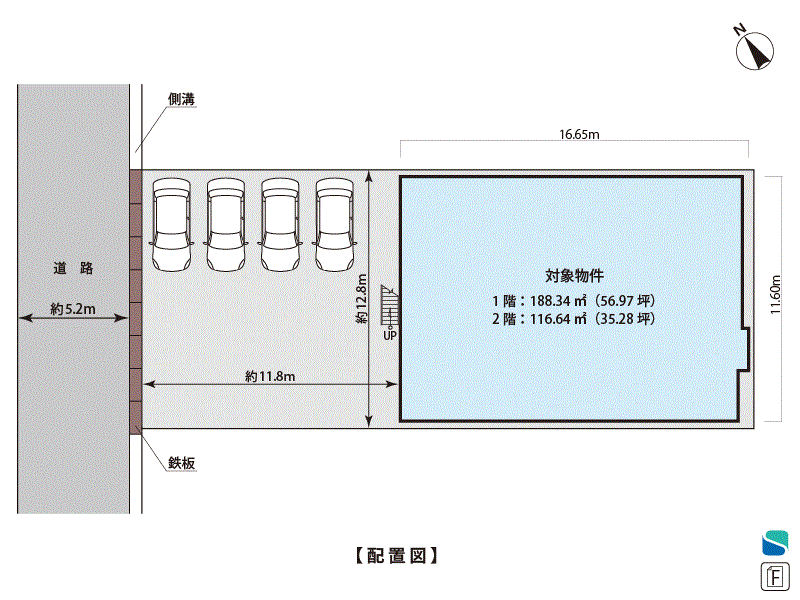 1F:188.34m²/56.97坪 2F:116.64m²/35.28坪 |