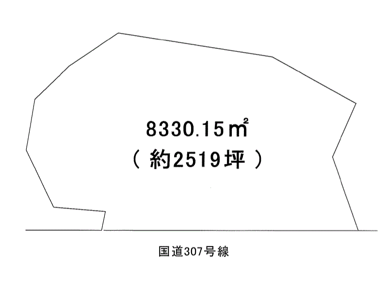 *地目:山林・雑種地 *法22条防災区域、屋外広告物制限区域、宅地造成等規制法、土砂災害警戒区域(一部)、都市再生特別措置法 *国道307号線面す *平らな部分:約2794.15m2(約845.23坪)擁壁部分を含みます |